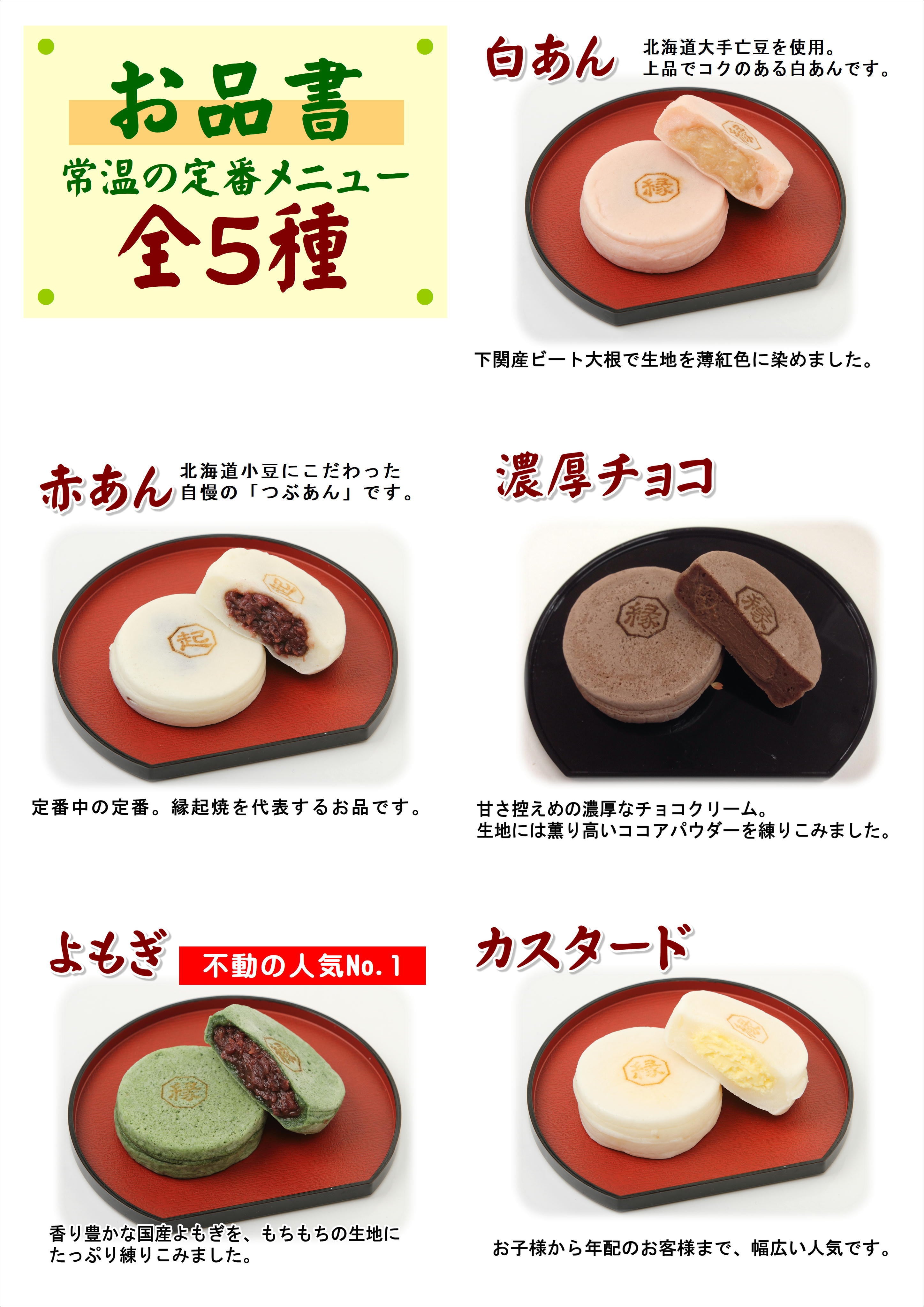 一つ一つが丁寧に作られた当店自慢の縁起焼。食べることで幸せの縁を感じることができます。是非一度お試しください。